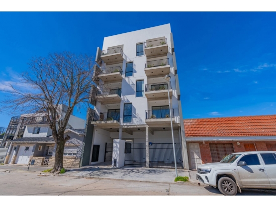 Departamento 2 ambientes a la calle a estrenar con balcón y parrilla. Cocina integrada. Baño completo. Toilette. Dormitorio a la calle con placard. Espacio para lavarropas. Calefacción por losa radiante. Aberturas en alumnio de DVH.