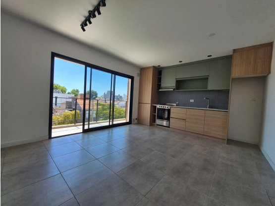 Departamento de dos ambientes a estrenar a la calle con balcón y parrilla. Living comedor con cocina integrada con amoblamientos completos, espacio para lavarropas y heladera. Caldera dual. Calefacción por losa radiante. Aberturas en aluminio de DVH. 2 unidades disponibles.